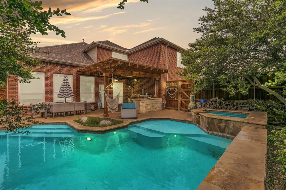 Motivated Seller! Welcome to this beautifully remodeled haven nestled in an idyllic Frisco neighborhood. The centerpiece of this 4 bed, 3.5 bath home is a sparkling, resort-style pool, inviting you into your private oasis. As you step inside, the hand-scraped hardwood floors exude warmth and elegance, guiding you through the spacious open layout. The fully-equipped gourmet kitchen boasts top-of-the-line appliances and ample counter space, perfect for entertaining. Step outside to the impressive outdoor kitchen, designed with alfresco dining in mind. It's the perfect place to savor meals with a cool breeze on warm evenings. Venture to the luxurious master suite with a spa-like ensuite. The other three bedrooms are equally spacious and inviting, ensuring comfort for family or guests. Overall, this home seamlessly blends style, luxury, and comfort. It's more than just a house, it's a lifestyle waiting to be lived.