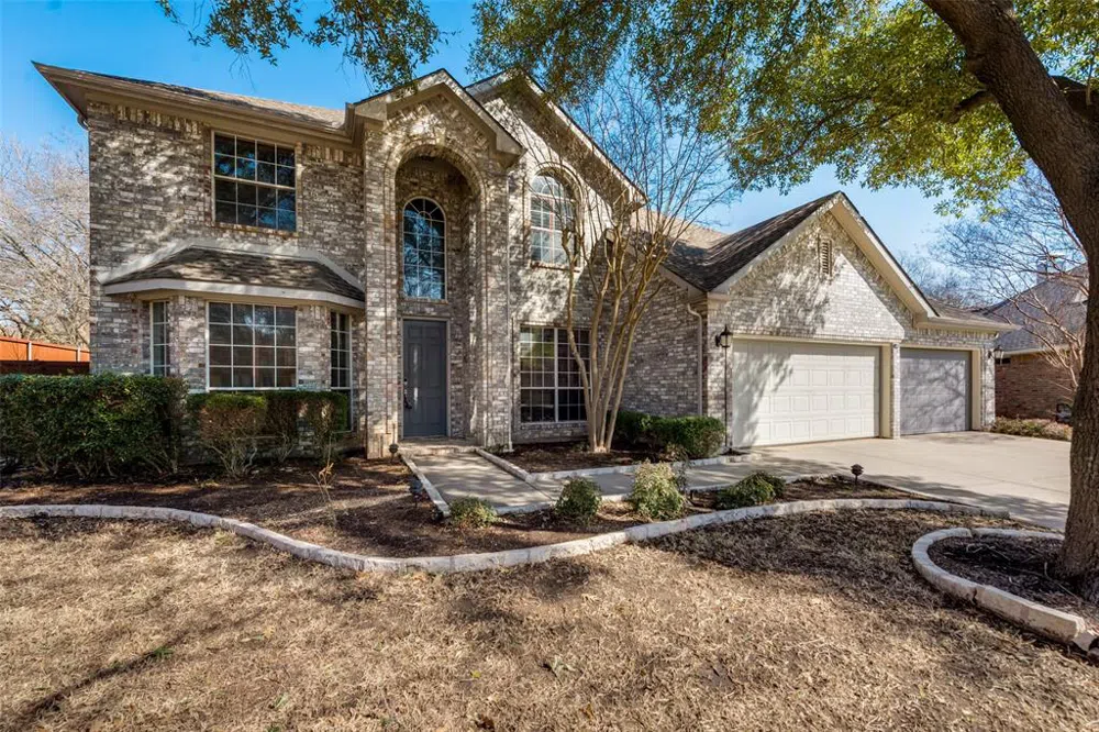 Windows are being replaced A 4BR 3BT home with 4 car garage and poised perfectly on a cul-de-sac lot! Walk in & immediately be awestruck by the dramatic entryway with its soaring ceiling and beautifully tiled floors. Enormous main area features a brick fireplace and huge windows with vistas of timbered greenbelt and creek. Delish cooking in the functional kitchen with SS appliances, granite countertops, kitchen island, ample storage cabinetry, and breakfast bar perfect for morning lattes. Master bedroom is privately positioned, has walk-in closet, and ensuite with jetted tub and separate shower. Plantation shutters throughout the home. Backyard oasis with patio for your furry friends or an additional area for play or relaxation. Recent improvements include but not limited to new AC units in bedrooms, right garage door replaced and installed seals around it, left garage door spring replaced, and new sprinkler heads. Close to DFW Airport, Grapevine Lake, and award-winning schools!