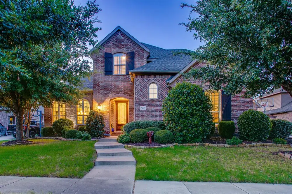 In a picturesque alcove of North Texas lies a hidden gem, where elegance and comfort entwine. Step into a grand living room, where sunlight streams through expansive windows, dancing on dreamy finishings. A charming stone fireplace warms your evenings, unwinding in its glow. The Headliner, a gourmet kitchen with gleaming granite countertops, pristine bright cabinetry. Mornings begin in the cozy breakfast nook, where the first light of day spills over your coffee cup. Two offices perfect practical. Upstairs, a spacious living room, theater promise movie nights, family laughter. Bedrooms, with private ensuite havens, offer restful retreats. The downstairs primary-suite sanctuary, en-suite bath is a personal spa. Outside, the beautifully landscaped backyard, perfect for magical evenings...covered patio for intimate gatherings, New Roof. In Lantana, a conveniently located community with premier amenities designed for comfort, steps to exceptional schools, HOA-included front yard care.